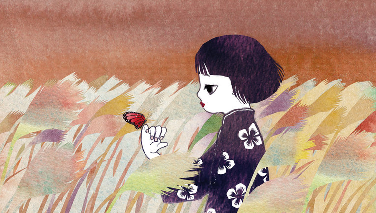 Set in China in the 1960s, the story opens with an old woman cooling off in her garden. As the sky turns orange with the setting of the sun, an evening primrose begins to bloom. Prompted by the sight of the flower, the woman recalls her childhood and dreams of the time in her life when she was at her most beautiful. Using Chinese-style cutout pictures, the work consciously accentuates the soft texture of the paper and the brilliant colors.