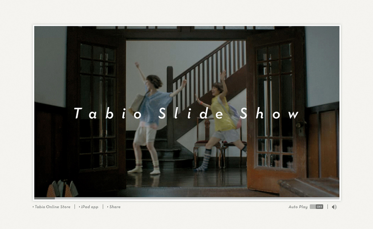 A promotional website of Tabio, a sock and tights specialty store, brings back the “fun of sliding in socks” that almost everyone has experienced at least once. Girls wearing various kinds of socks slide pleasantly on the floor all over the house. To continue the story, users “slide” the information from the sock catalogue that occasionally appear in the movie. Images, music and interaction are brought together into a movie catalogue that delivers a new sensation to the user.