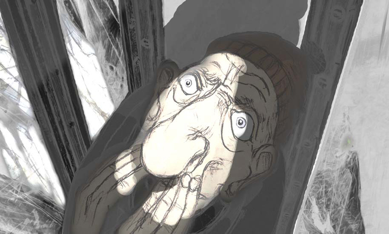I found one frankly interesting work among the overseas entries. Though the title is The Cable Car, the transportation depicted in the work is called a “ropeway” in Japan. Hence, the car could also be referred to as a gondola. An old man, who seems to be suffering from rhinitis, rides the gondola and heads for the mountaintop. Whenever the old man sneezes, the wind pressure destroys the gondola little by little, and finally…as such, the simple story is represented in fast motion, following the conventional cartoon style in which a gag escalates. On the other hand, effectively mixing hand-drawing and 3DCG, the design of character and scenes creates pictures with warmth and texture. The fear of riding in a falling ropeway gondola may be a familiar theme in Switzerland, but it also has a compelling effect on a Japanese audience, since many Japanese have experienced such a thrilling feeling when riding a gondola. This is a strange work, but impresses the viewer by being both funny and a little scary at the same time, with the physiological reaction of sneezing and acuquiring a thrilling sense of coldness from below the ropeway.