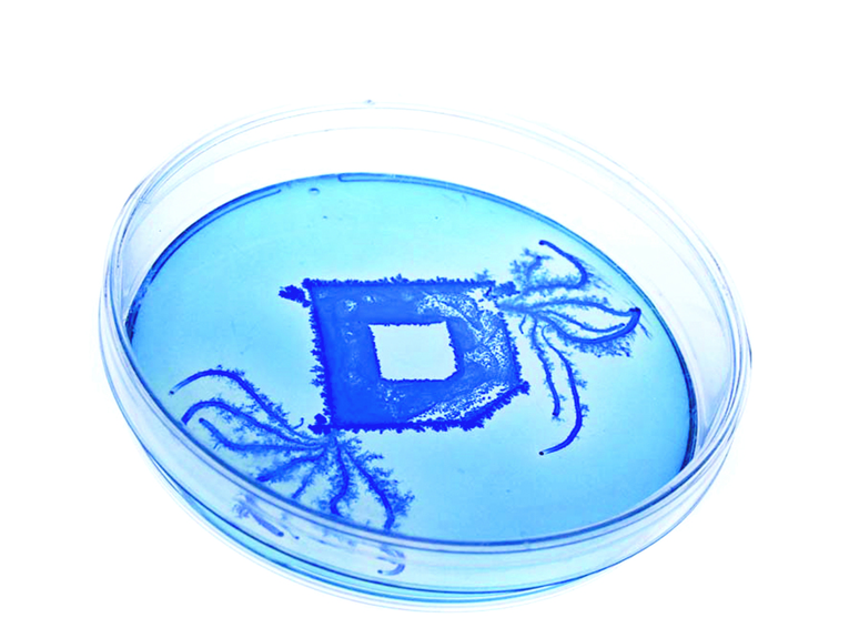 The Living Language Project is a linguistic research project that utilizes scientific methods and explores the boundaries between culture and nature. It proposes a new possible evolution process for the Hebrew alphabet that may have occurred during the 2,000 years the language was considered dead. The core element of the project is “Bio-ink,” a type of ink the artist created with a bacteria called Paenibacillus vortex. With this ink, old Hebrew characters were written in petri dishes, where an additional layer of protein or food in the shape of contemporary Hebrew characters was superimposed on them. As the bacteria move toward the food, the entire colony of the bacteria gradually grow or “evolve” into the shape of the new character. Bacterial growth is affected by environmental conditions such as food availability and temperature. This project deals with the tension between the desire of humans to control the behavior of living organisms and the forces of nature running their own course. It is also an attempt to propose a possible process by which a living language can gradually evolve. The artist combines research, experiments, and results with his original theories to reexamine nature, culture, and language including the letters. He also investigates to what extent technology and nature’s designs can coexist and interact with each other in the field of synthetic biology.
