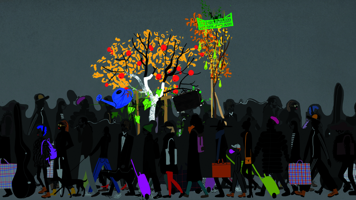 A film is based on the poem of Claude ROY, a French poet who passed away in 1997, Le jar- din perdu (The lost garden). A simple poetry is visualized with a picture-book-like touch. When all the buildings fall down, the trees and flowers in the garden prepare for the journey and start moving. They take a train to the big city and look for a place where they can be a garden.