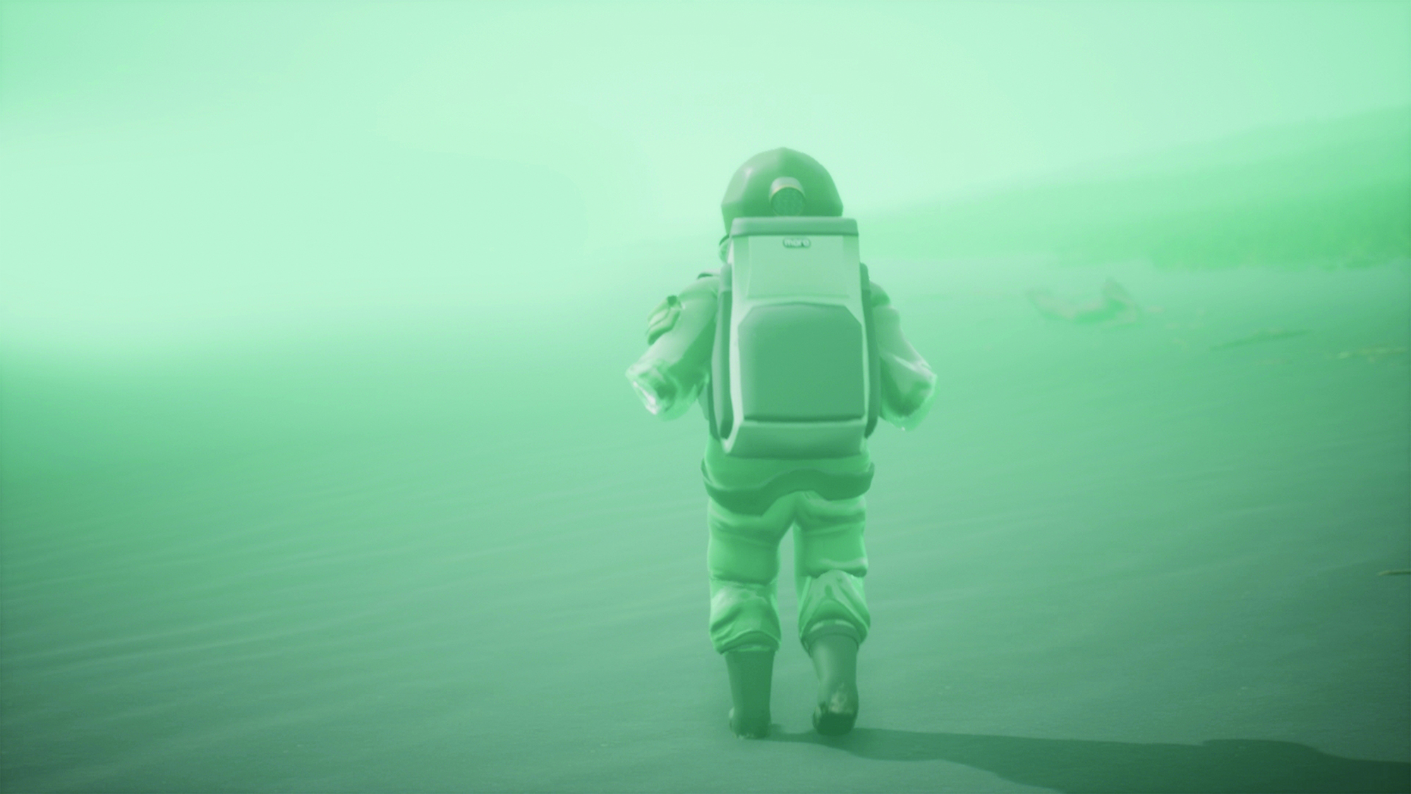 In this 3DCG animation, a man films on the shoreline of an unnamed island and narrates his research on what he calls the onyudo—that is, giants. Purportedly born in Hyogo Prefecture and posted to this observatory, he refers to these enormous, shrimp-like onyudo as “she” and “her” while describing how their beached corpses will be processed and buried and his research into why they come ashore when all that awaits them is death. Through the use of models, motions, and detailed settings, the animation realistically portrays otherworldly beasts and the unlikely research accompanying their equally unlikely existence. It was created in the game engine Unreal Engine 4, an unconventional approach to 3DCG animation.