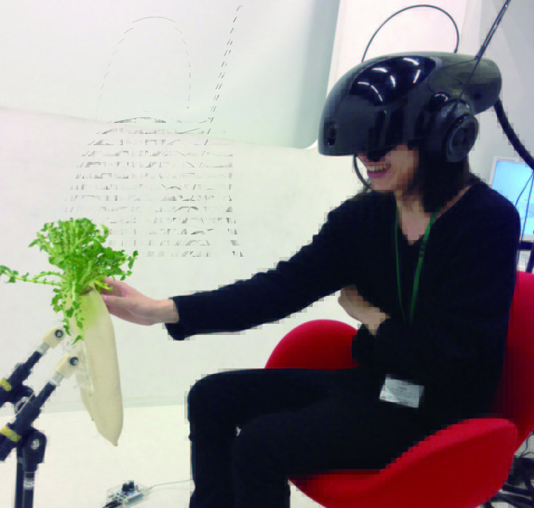 This work combines substitutional reality (SR) technology, which makes the border between fiction and reality indistinguishable, with a radish device that groans when touched. It was developed to provide an experience evoking sexual emotions. By synchronizing all five senses when operating the system, it succeeds in producing an extremely realistic simulation of excitement.
