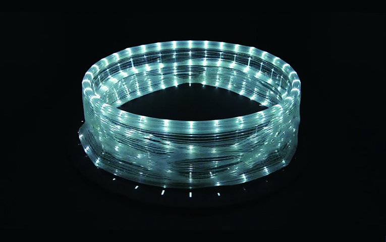 This work gives visible form to time by capturing 2D images of walking and other human actions, converting them to 3D, using computer graphics to link the outlines of discrete actions in a donut configuration, and making a 3D print of the resulting object. What looks like a white mass transforms into the motion of instances of time when rotated through slits of projected light, capturing the beauty and texture of time by elucidating its relationship to movement.