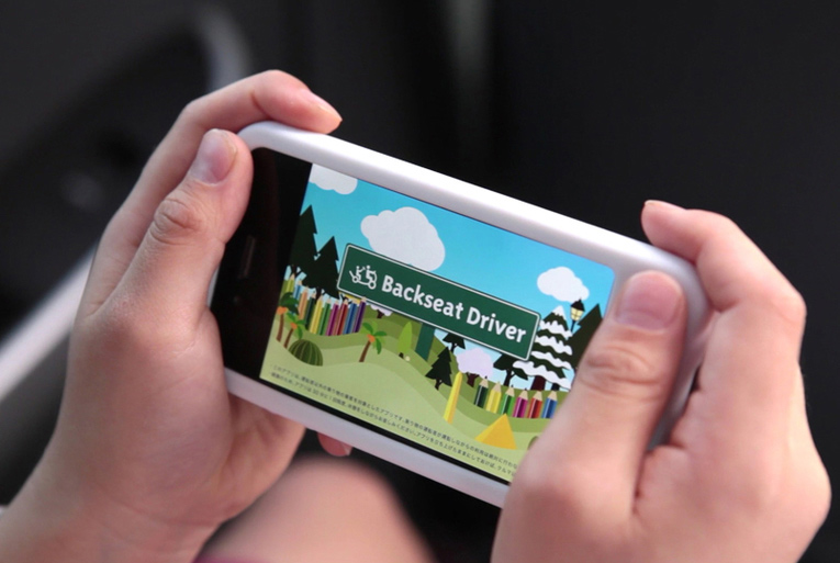 An iPhone application allowing children sitting in the back seat handle ‘my car’ to follow the course of the vehicle which is called “daddy’s car,” that is GPS-linked with the car they are riding, and join in the fun of actually driving themselves. A FourSquare application programming interface records stores and other points of interest on the route as “items,” earning points with which users can customize their iPhone car. A new type of mobile entertainment designed to introduce car owners of the future to the pleasures of driving.