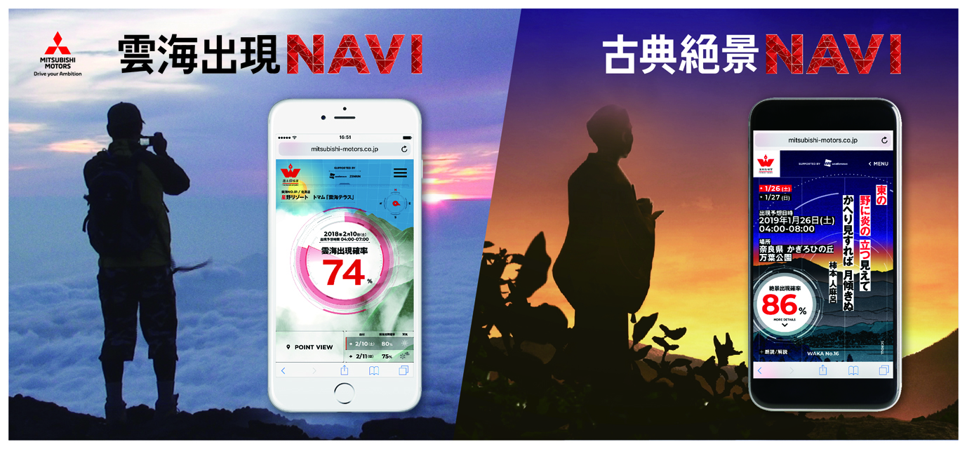 A web service that predicts natural phenomena using topographical and meteorological data.Unkai Navigator predicts the probability of an unkai (sea of clouds) occurring at 30 sites throughout apan. Time Travel Navigator predicts the probability of magnificent views mentioned in classical Japanese literature occurring at 18 scenic places. The site also gives guidance on getting to these destinations and welcomes user feedback.