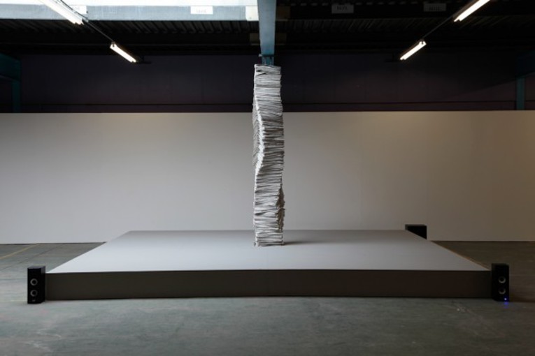 A group of apparently unrelated symbols are assembled to address issues such as regional politics, identity, and historical coincidence. When the viewer pushes a button (made of a gold coin minted in 1996), it triggers a chain of destructive and reproductive actions, making music play, and pushing over a pile of newspapers in a separate location and then restacking them with an electronic mechanism. This completely upends our initial impression of the work.