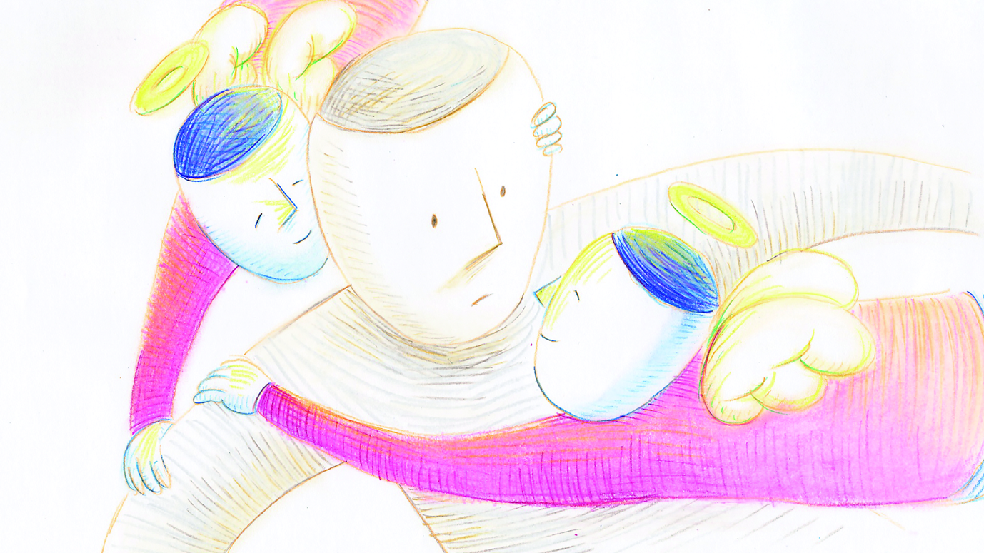 A man drinks the water in a cup and falls asleep. A presence is watching over him from above the clouds… All things that surround us – furniture, homes, trees, animals, people – are born, dissipate, and are then reborn. This “Cy- cle of Things” is the theme of the film. The animation proceeds like a dance driven by rhythmical music, and together with the fluctu- ating hand-drawn images, creates a bright and energetic ambience.