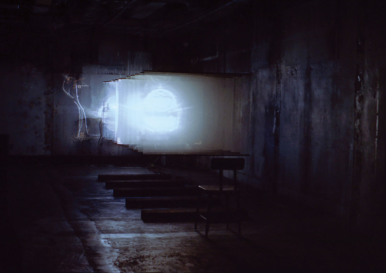 A space where 12 special screens are laid out ; a train captured by a medical CT scanner rushes through these layers of screen, and the visual image occupies the three-dimensional space of the real world. The people were astounded to see the world’s first motion picture,The Arrival of a Train at La Ciotat Station by the LUMIERE brothers. This work is an attempt to create a visual image that matches their wonder, and an experience of light that could not be found in previous visual images.