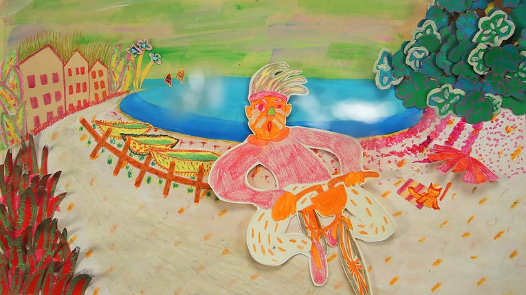 This animation recreates something that happened to the artist. One summer day she meets an elderly man who teaches her Russian on a beach in Yokohama and then shows her the familiar city in a completely new way. Produced using a combination of different techniques such as papercutting and clay, the film also integrates voices recorded outside on actual location.