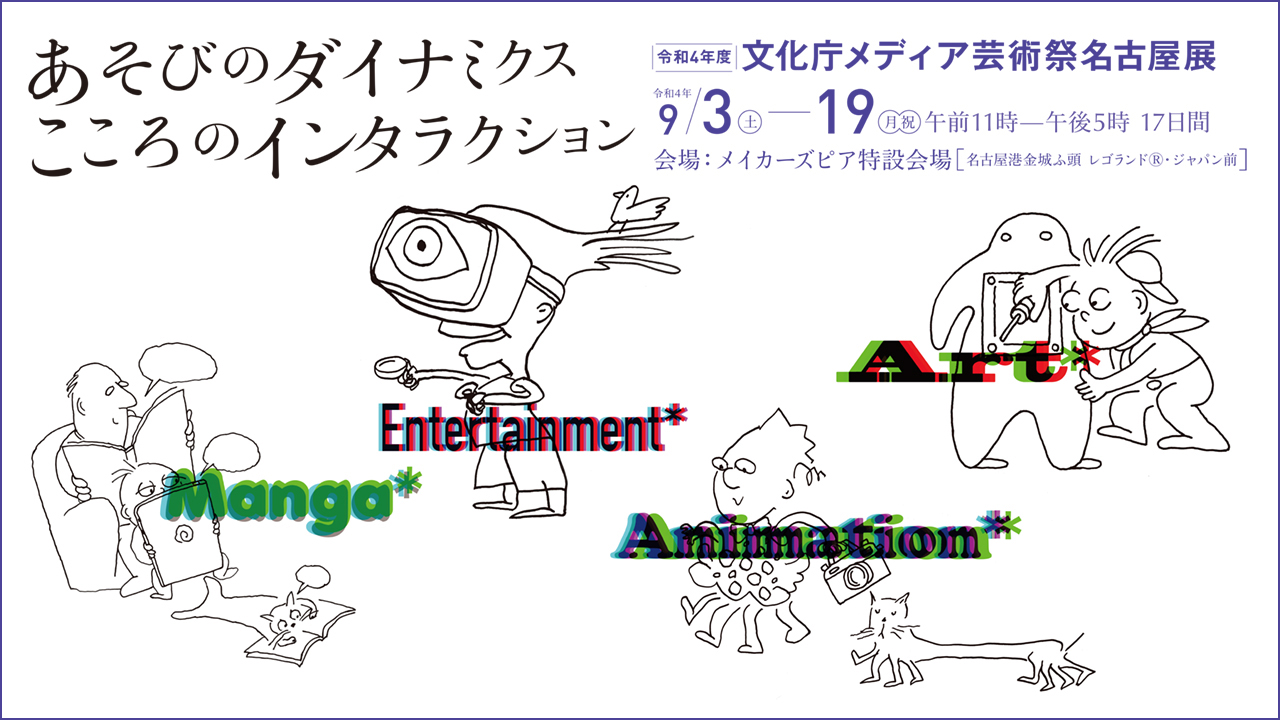 The Agency for Cultural Affairs, Government of Japan organizes exhibitions in regions around Japan that comprehensively introduce superb examples of Media Arts, including new media art using digital media, gadgets, application software, and video games, as well as animation and manga employing cutting-edge technology and contemporary creative environments.
